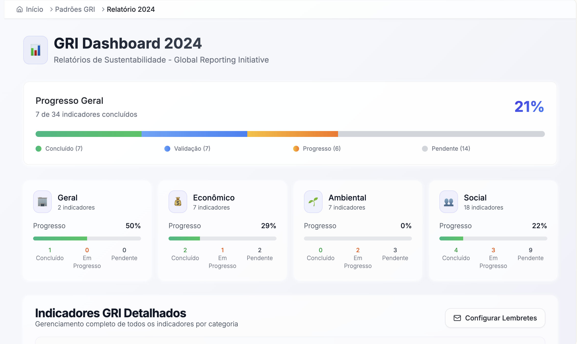 Nosso software automatiza a coleta e a organização das informações segundo os padrões GRI e SASB, facilitando a elaboração de relatórios de sustentabilidade profissionais, claros e alinhados às exigências do mercado e dos investidores.