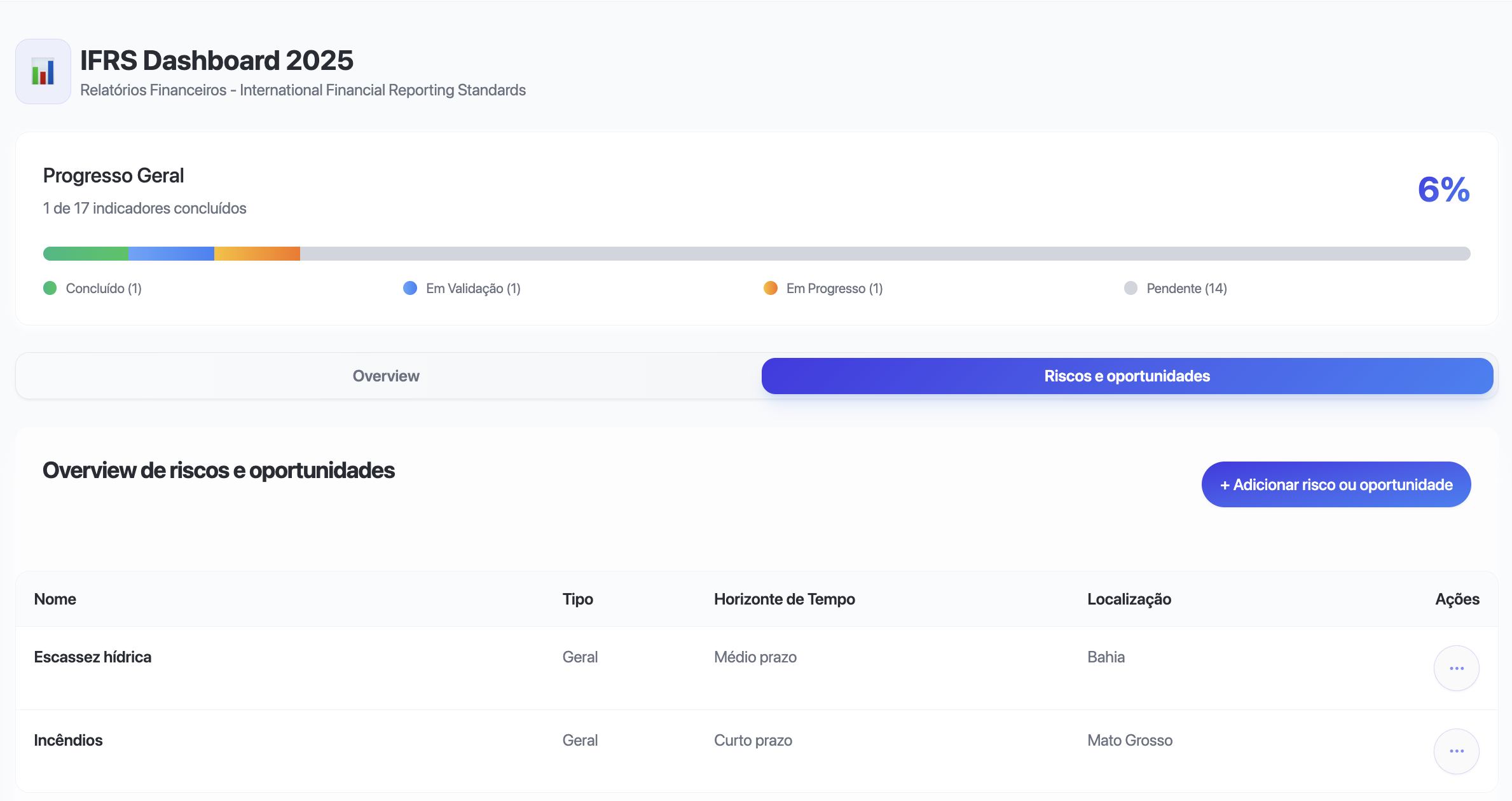 Visão consolidada de riscos e oportunidades
